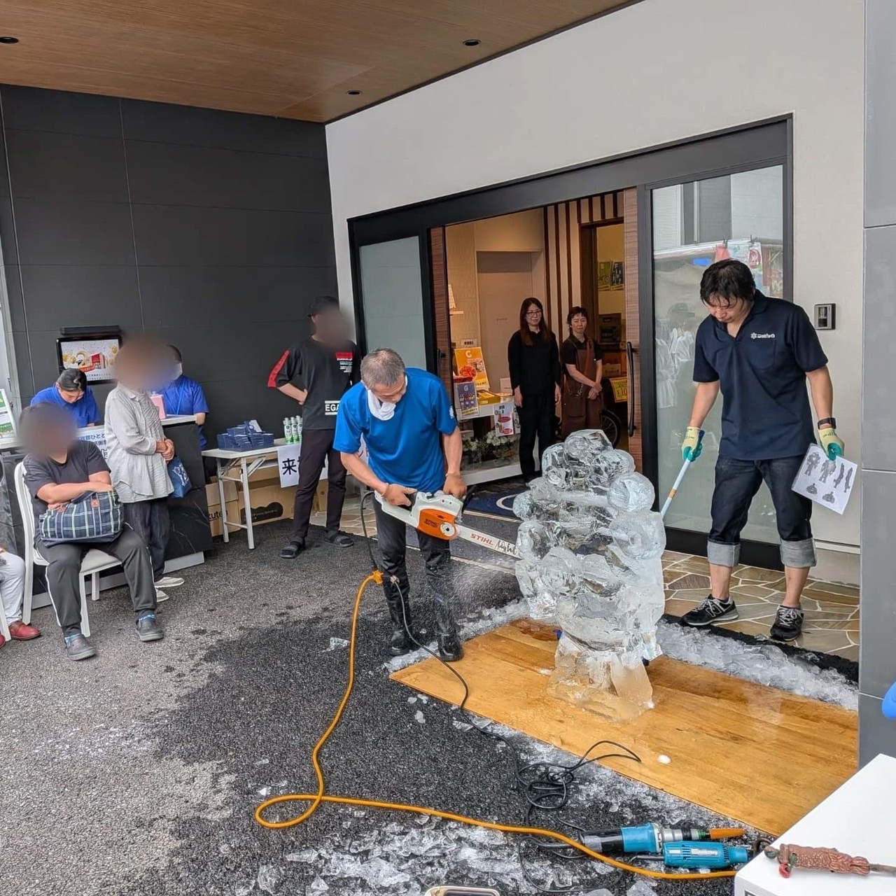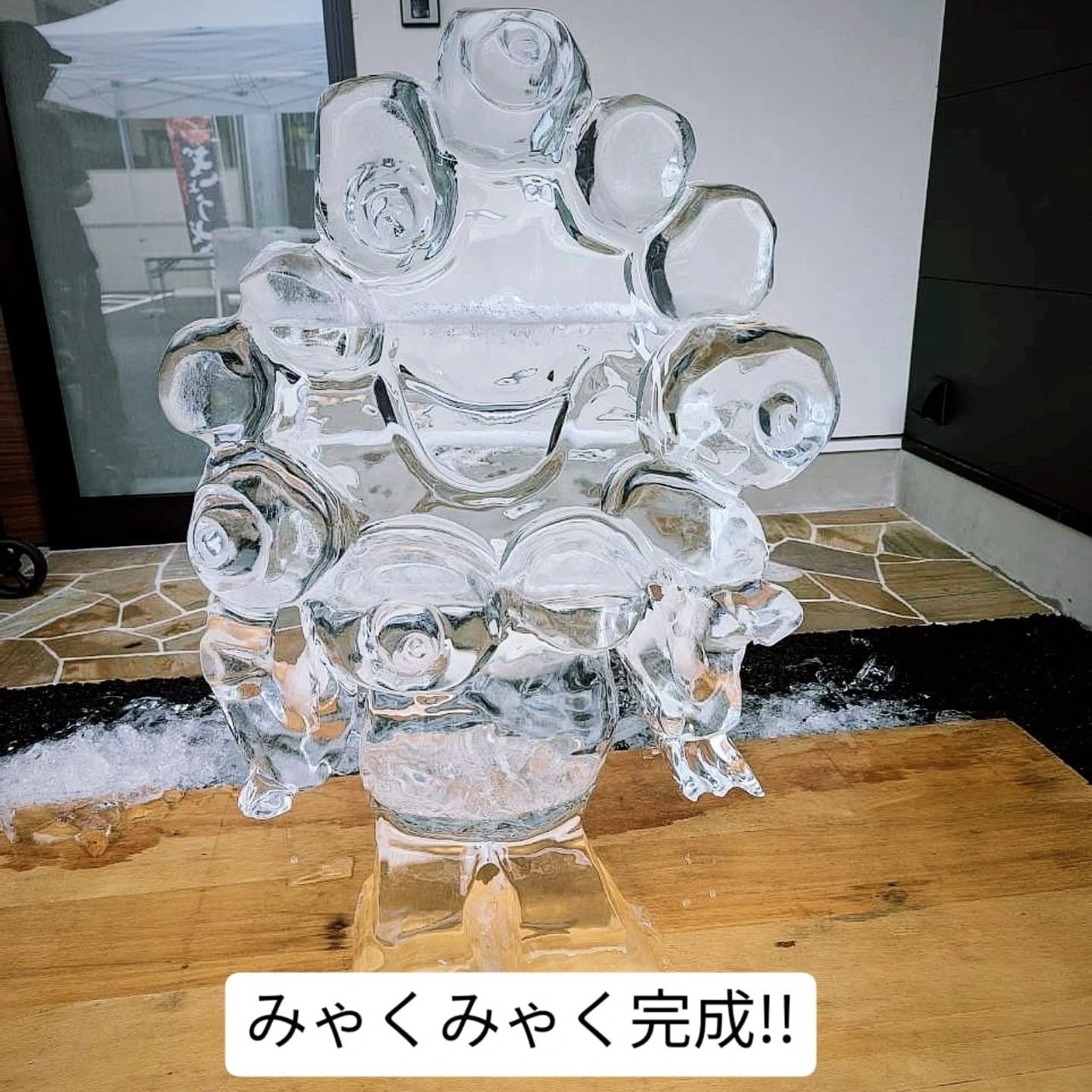 そして、「氷の彫刻実演ショー」では多くの方に見守られながら出来上がりを待っていると、徐々に表れた【ミャクミャク】に歓声が起こっておりました。